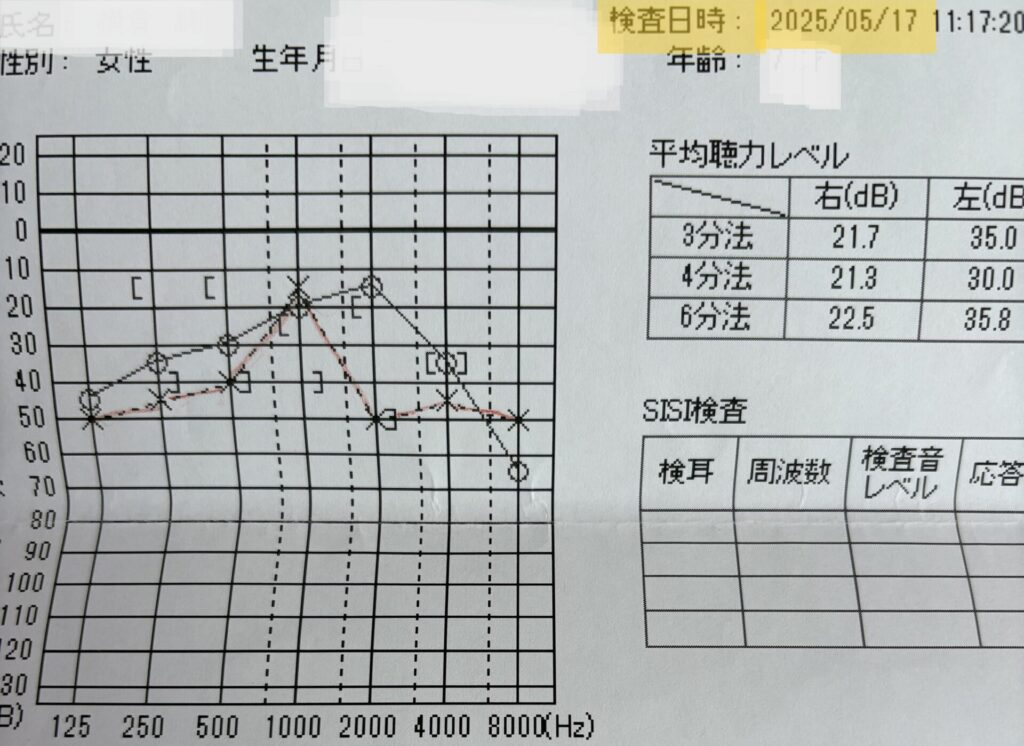 【↑↑ 上 2025/05/17聴力検査結果(Acureご来院前)】5月16日夜、左耳で電話がきこえなかった。翌日、近医耳鼻科クリニックを受診、『突発性難聴』と診断された。持病があるためステロイド剤は処方されなかった。