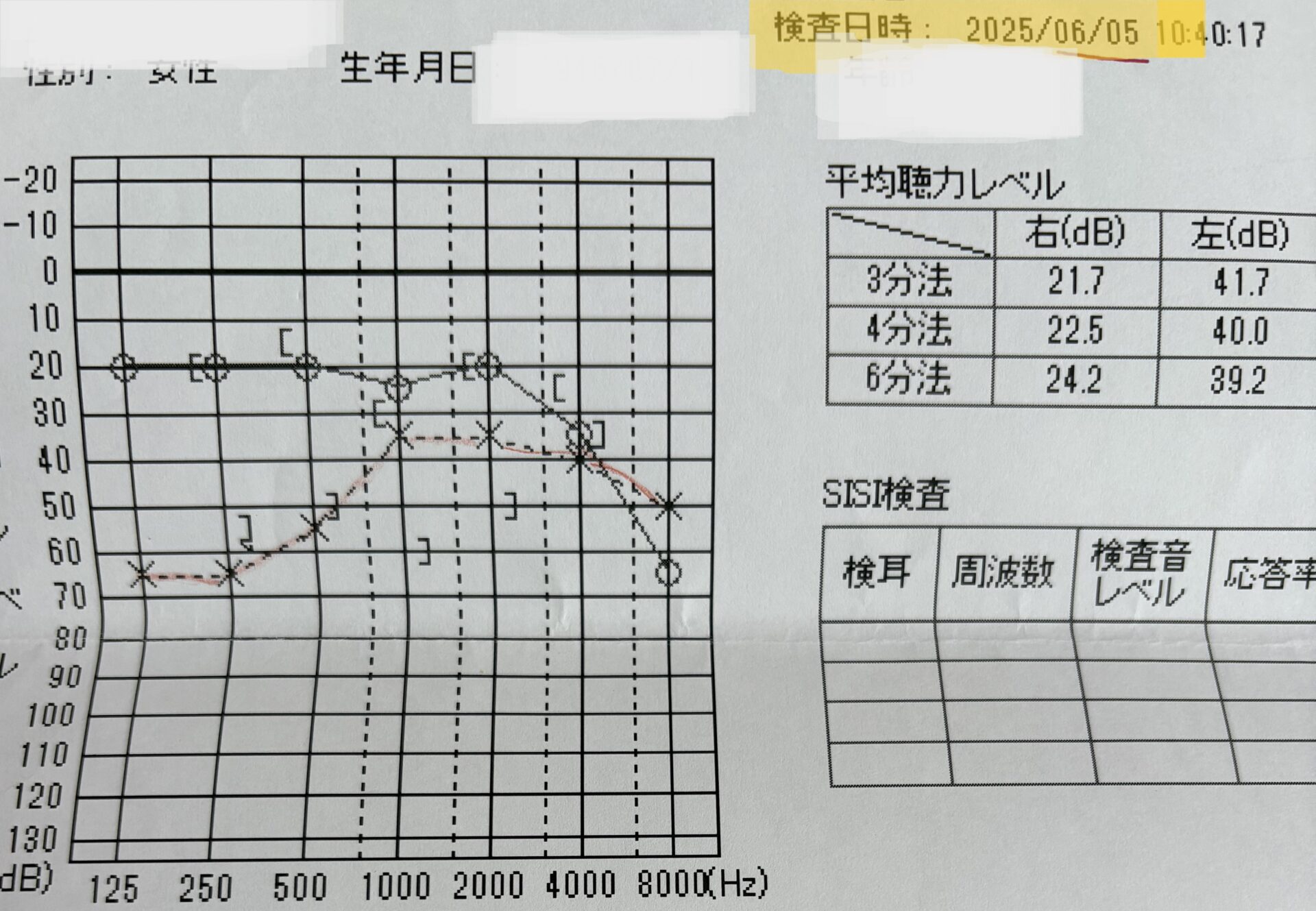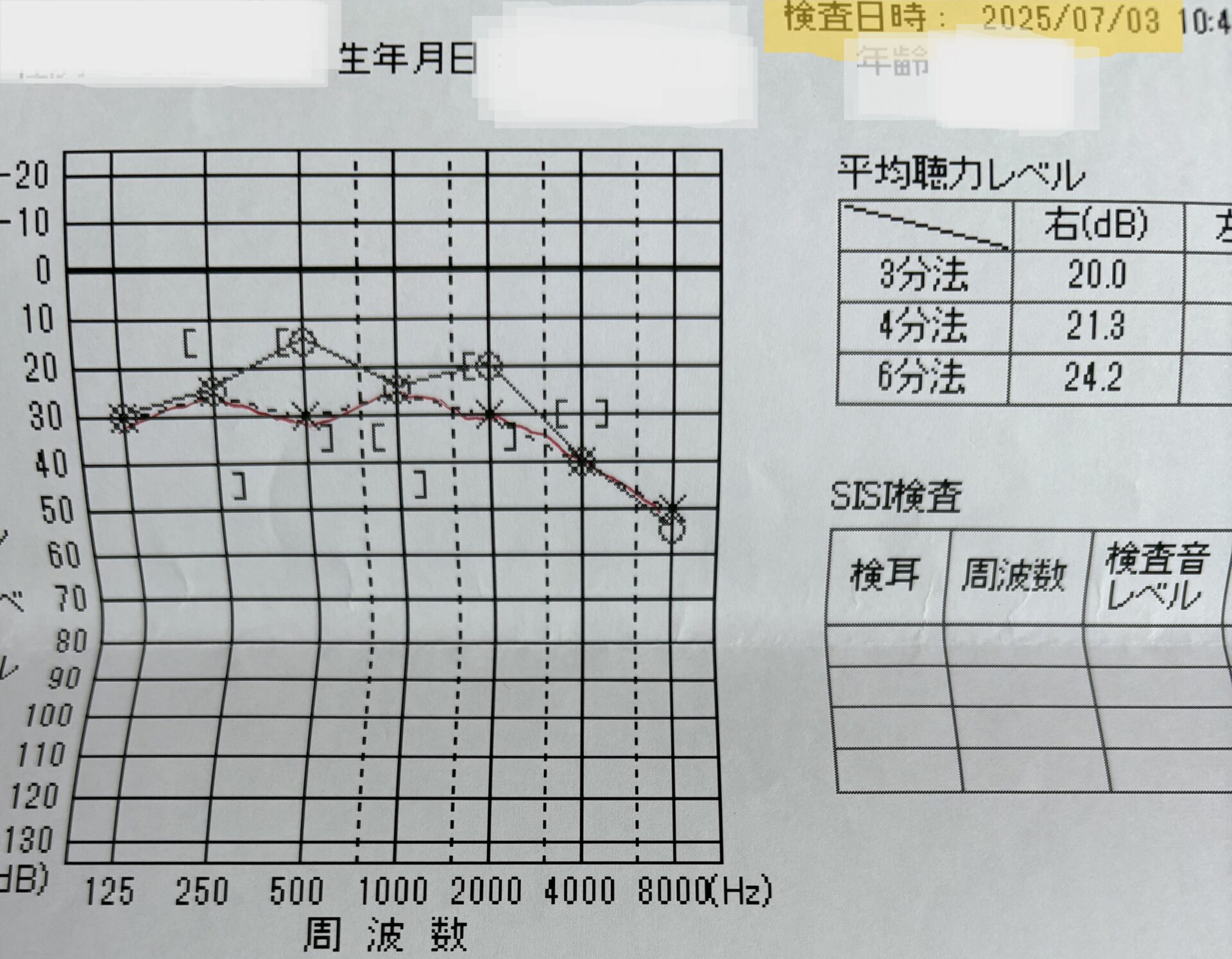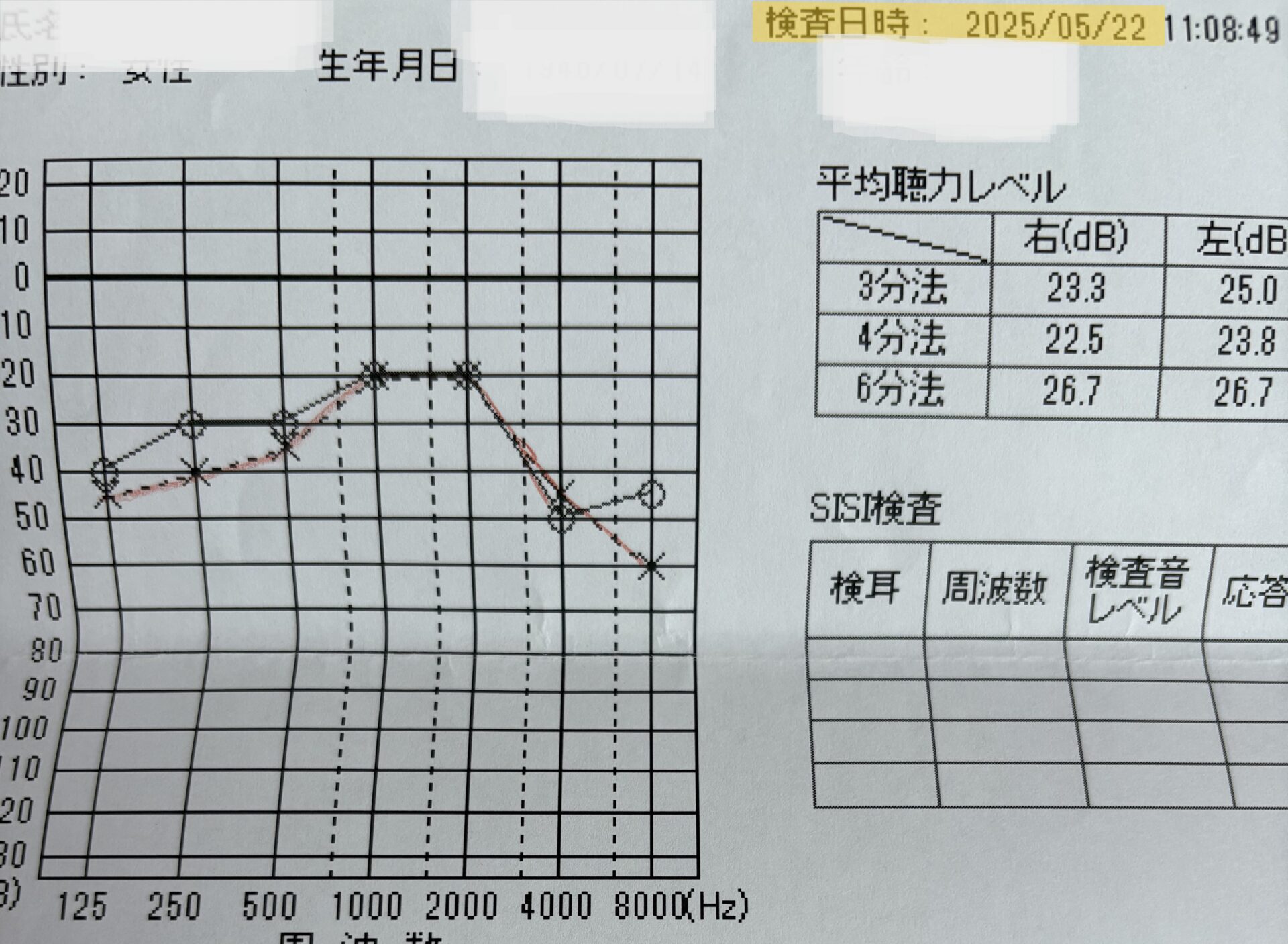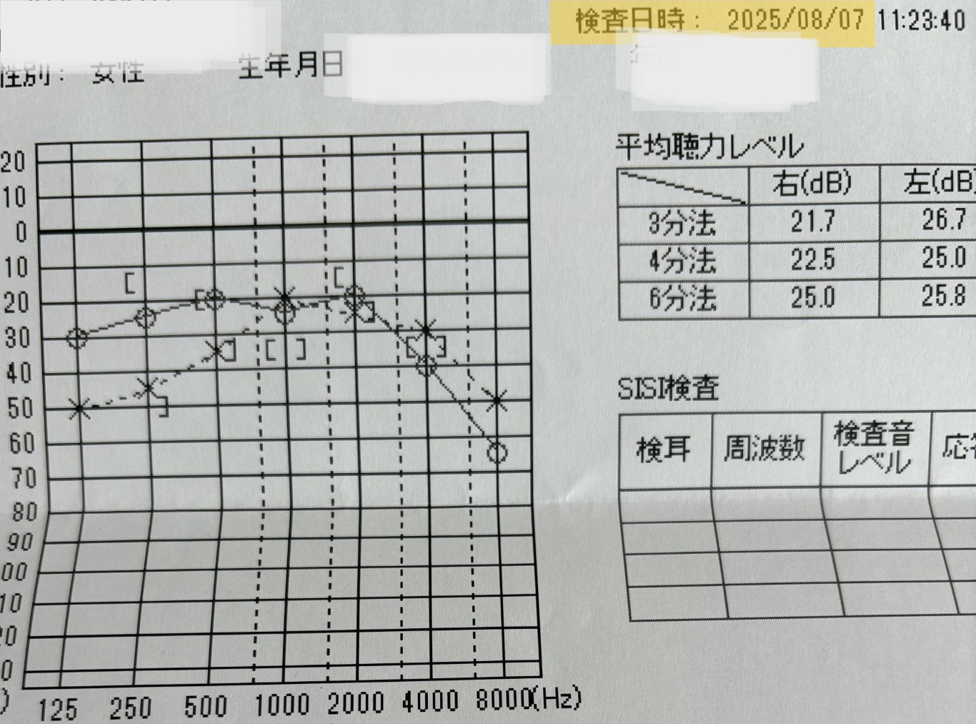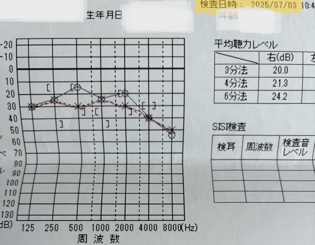 【2025/08/04(Acure鍼&マッサージ治療4回目)】いまは塞がった感じはないが塞がっているときもある。7月3日の聴力検査結果が一番良かった。