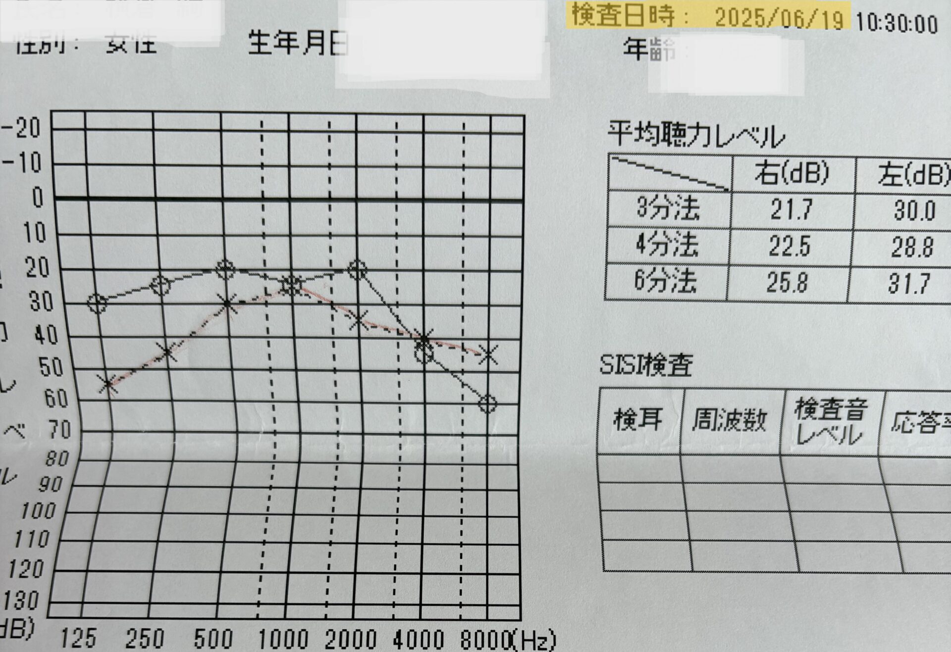 【↑↑ 下2025/06/19聴力検査結果】06/12と変化なし。